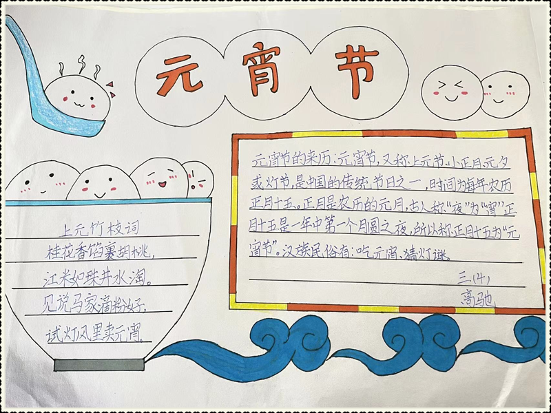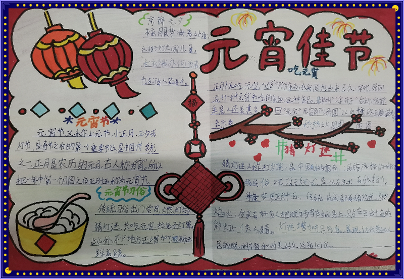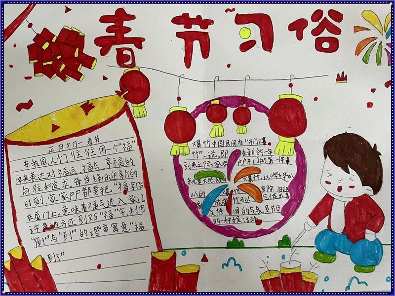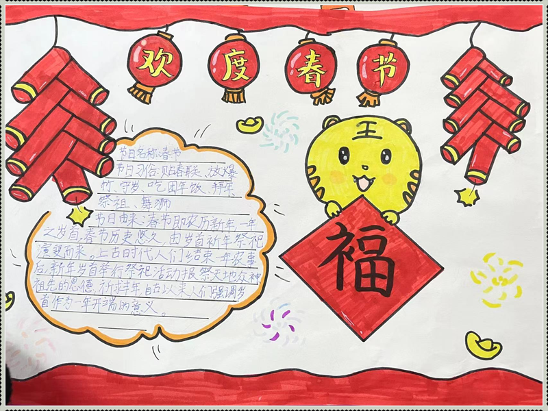 假期里,同学们顺利获得搜集、研讨、诵读资料,走近传统节日,分析了节日的具体日期和风俗,并以图文并茂的方式做成小报来展示自己的学习所得。