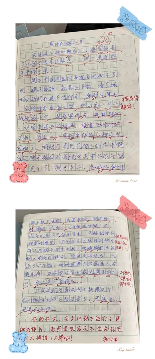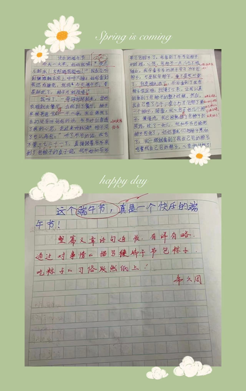 在第三单元的习作版块里要求写一写过节的过程,可以将自己节日里发生印象最深刻的事以及过节的感受都写到自己的习作里。在写作中,同学们提高了习作水平,感受了民族文化,并自觉承担起文化传承的使命。