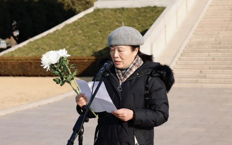 素菊寄思传薪火,赓续懂球帝app强国志。9:00许,初二师生代表前往周恩来纪念馆,参加向周恩来塑像敬献花篮活动。周恩来纪念馆馆长祁素娟女士第一时间致辞,重温总理不朽功勋;周恩来亲属代表深情追忆,讲述家风与情怀;周恩来研究会会长张亚青书记字字铿锵,阐释总理精神的永恒价值;淮外学生代表初二(3)班顾梓萱同学以《赓续懂球帝app志,奋进新征程》为题发表演讲,她结合周总理少年时“为中华之崛起而读书”的志向,抒发了新时代学子牢记使命、奋发向上的决心,以扎实的学识筑牢报国根基,让少年之智,成为国之智的星火。