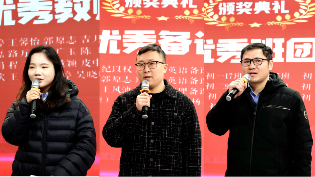 校长赵树青发表主题分享,他围绕"新愿景,新指向""新追问,新探索""新学期,新目标""新思路,新作为"四个方面,激励全体淮外人以奋进姿态开启新学期征程;赵校长强调要以“人在中央、贯通融汇”等根本原则和涵盖理想信念、传统文化等八个维度的德育体系赋能学生成长,并聚焦教学方式变革与“学为中心”的课堂范式,引领全体教师共同提升教育品质,擦亮“学在淮外”的育人名片。王奎生副校长、李文婷副校长分别就德育宣传、教学教研工作部署安排;张明根副校长宣读表彰决定,对优秀班团队、备课组及教师予以表彰激励。赵德世、郭原志、胡雅婷三位老师代表获奖者发言,分享感悟、表达决心,展现了淮外教师团队昂扬向上的精神风貌。