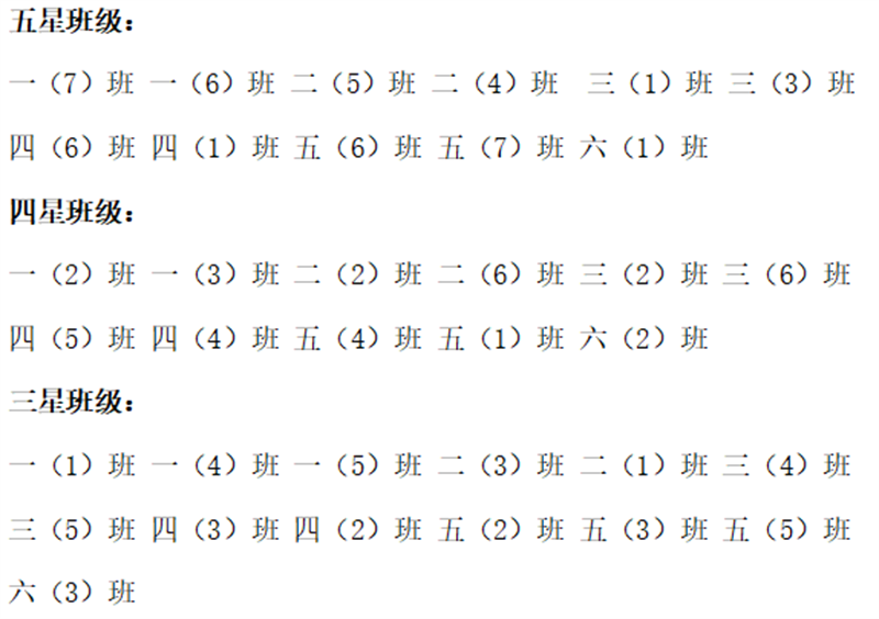 为了创建文明校园,促进学生文明礼仪的养成,经过上周值日儿干对班级、宿舍等进行量化考核,由德育处公布上周取得文明班级的班级名单,并颁发流动红旗。