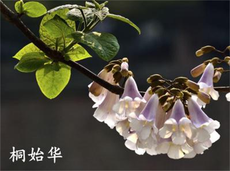 初候,桐始华:桐树有很多种,其中包括一种开紫白色花朵的泡桐。此时泡桐树开始开花,一朵朵大片的花瓣像风铃一样,十分好看。