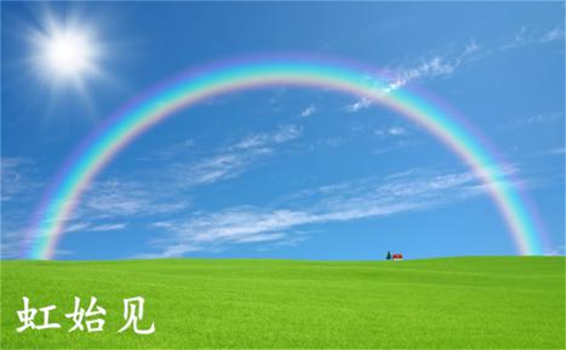 三候,虹始见:清明前后,雨水较多。雨过天晴,空气中充满着大量水汽,所以经常会出现彩虹。