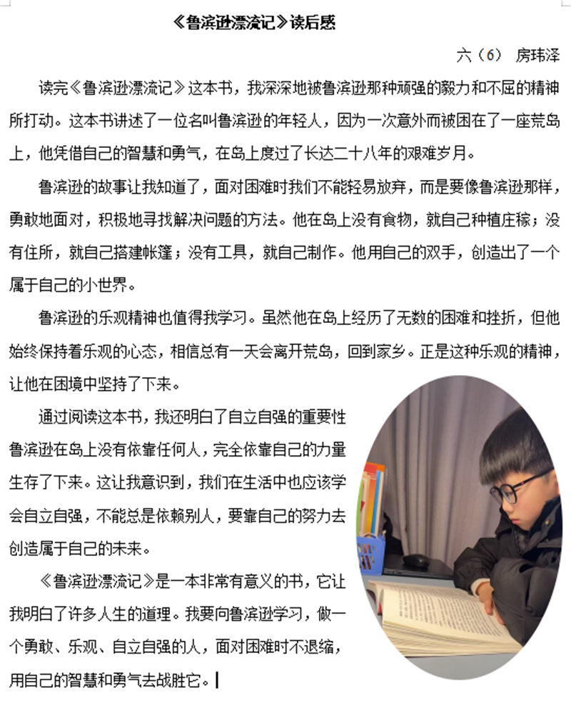 六年级的孩子们在寒假期间认真阅读了各类优秀书籍,不仅丰富了知识储备,更在心灵深处种下了梦想的种子。在读后感撰写过程中,孩子们将阅读过程中的所思所感化为笔下动人的文字,用细腻的文字描绘了自己内心的触动和感悟。