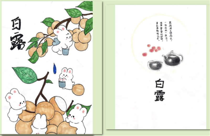 九年级1班的同学们,用色彩斑斓的画笔,将白露节气的美丽景致与传统习俗融入到手抄报中。每一幅作品都凝聚着同学们的巧思妙想和辛勤付出,展示出了他们对传统文化的热爱与传承。手抄报上的图案栩栩如生,文字生动有趣,不仅让人领略到了的自然之美,更让人感受到了传统文化的博大精深。