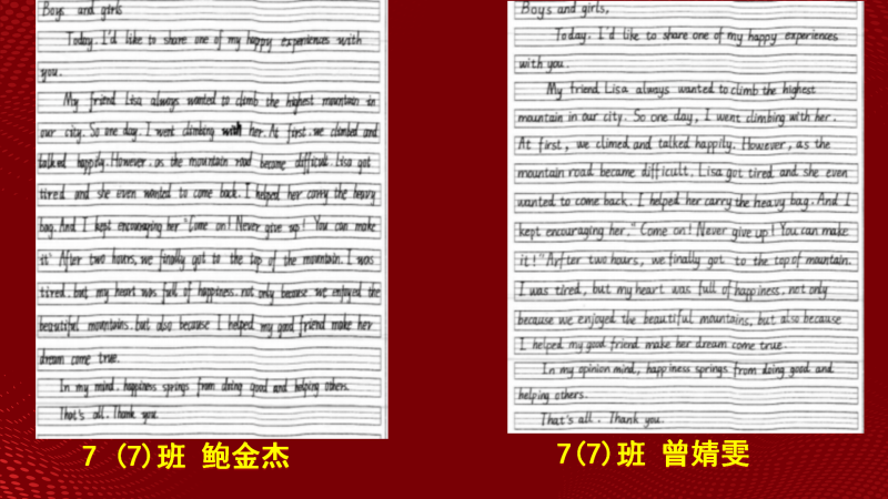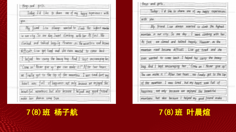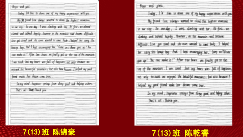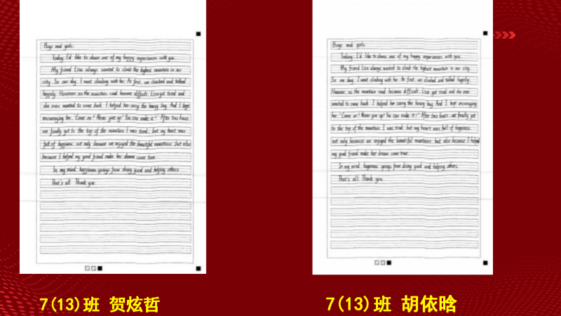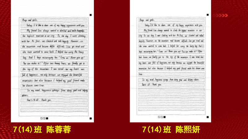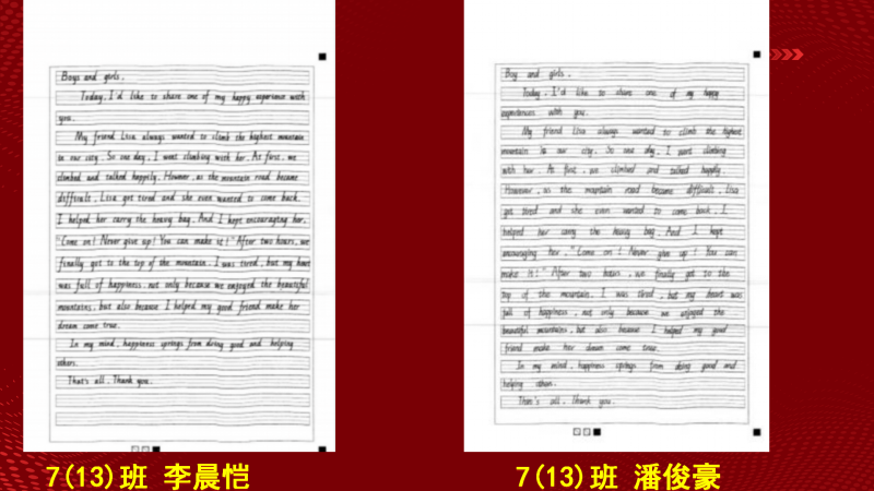 英语书写大赛同样精彩,着重考查基础素养。同学们在规定时间内创作书法作品,老师从字体规范、卷面整洁等方面打分。最终 63 幅佳作在初中部 LED 宣传屏滚动展示,成了校园一道亮丽风景。有同学兴奋表示:“看到自己作品在屏幕上,超有成就感,以后肯定把英语字写得更漂亮!”