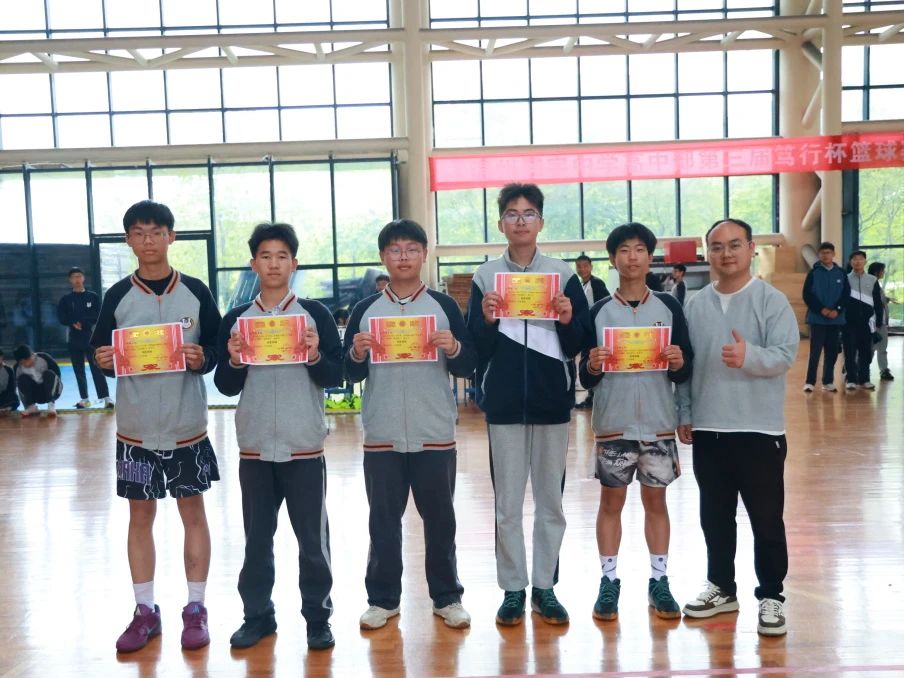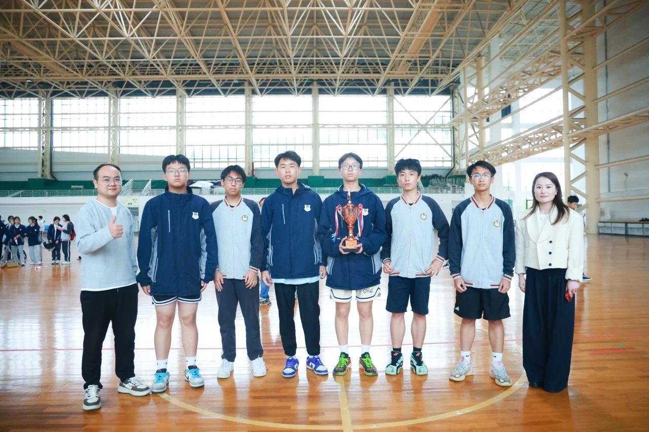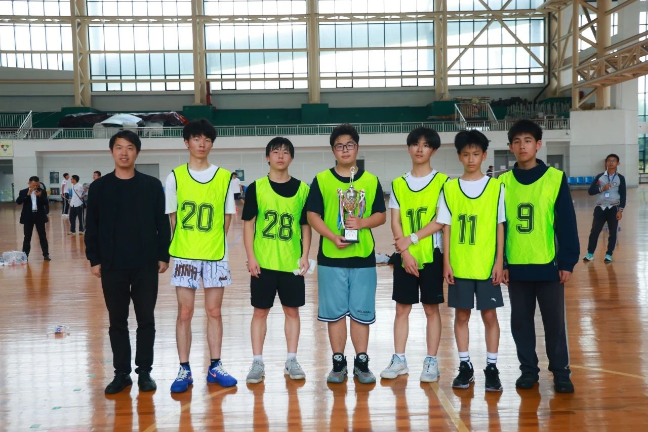 比赛结束后,激动人心的颁奖环节正式开始。学部领导依次为取得优胜奖的 8 班、9 班、7 班、4 班,第四名 6 班,季军 10 班,亚军 3 班颁发奖状与奖杯。当冠军八年级 2 班的球员们登上领奖台时,全场响起了最为热烈的掌声与欢呼声。在璀璨的聚光灯下,冠军奖杯闪耀着金色的光芒,映照着球员们汗水中洋溢的笑容。