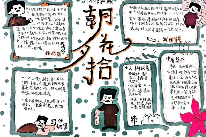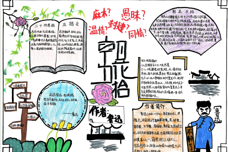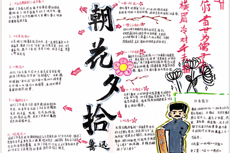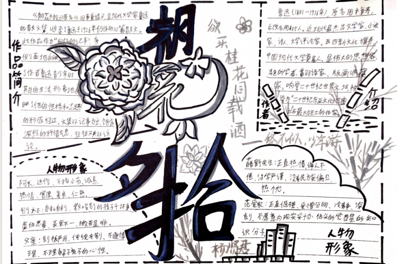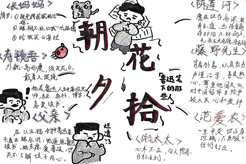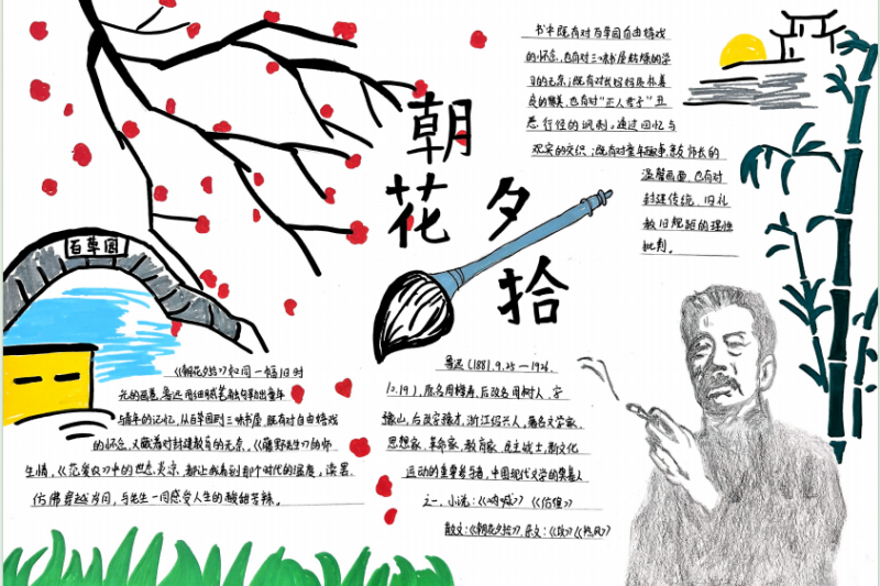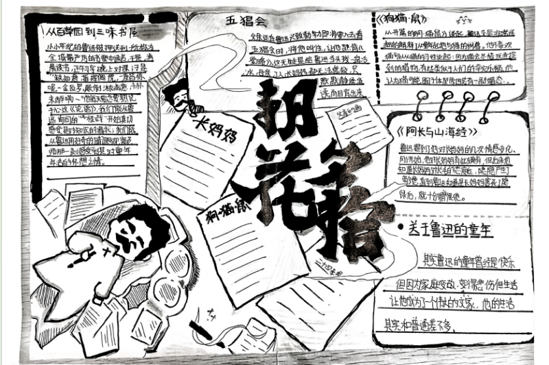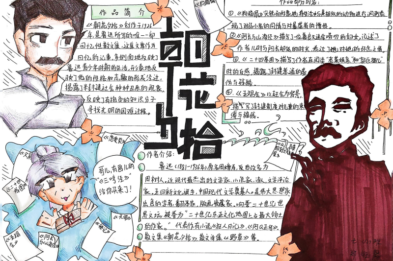 七(3)班杨玮琦同学则画了时间轴,“从百草园玩闹到日本留学,鲁迅的成长路径,用画的比看书记得牢!”