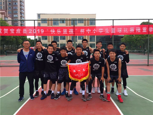2019年5月,宝应实中篮球赛训队在县中小学篮球比赛中取得第一名。校领导希望各位队员在今后的生活、学习中继续发扬不怕吃苦、勇于拼搏、不畏艰难的优良品质,在人生的道路上永攀高峰,实现人生梦想。也希望其他同学以他们为榜样,努力学习,更上一层,金榜题名!