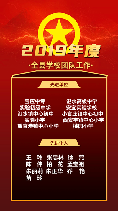 2020年4月29日下午,共青团宝应县第十八届委员会五次全体(扩大)会议在县委党校召开,全县各直属团组织负责人等参加会议,会议由团县委书记王晓峰主持,县委常委、组织部部长吉琳出席会议并讲话。此次会议,宝应实中团委工作再获佳绩。会上,宝应实中团委取得“2019年度全县共青团工作先进单位”、“2019年度五四红旗团委”两项殊荣。宝应实中团委副书记姜露作为共青团全体委员会委员参加会议,并代表学校上台领取奖牌;团委李娜老师被授予2019年度宝应县“新长征突击手”荣誉称号;卢姝玥、蒯欣灵两位同学获2019 年度宝应县“优秀共青团员”荣誉称号。