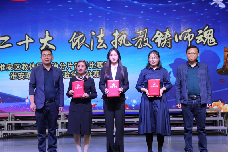 为深入学习习近平二十大报告精神,弘扬教师的高尚美德,提高全区教师依法治教的意识和能力。10月25号下午2点,淮安区“杏坛放歌二十大,依法执教铸师魂”主题演讲比赛片区赛在淮安曙光双语实验学校明志楼四楼隆重开赛。出席本次活动的领导有区教体局办公室张红军主任,曙光双语实验学校初中部朱永前校长、徐爱华副校长、宗金龙副校长。评委席就坐的有来自车桥初级中学、季桥初级中学、平桥中学、吴承恩中学、曙光双语实验学校等参赛校的评委。