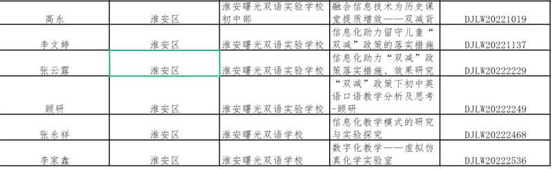 近期,2022年淮安市教育信息化论文征集活动结果揭晓。淮安曙光双语实验学校初中部张云露、顾研、张永祥、李佳鑫荣获淮安市教育信息化论文二等奖,高永老师、李文婷老师荣获淮安市教育信息化论文一等奖,同时高永老师的论文还获了省级三等奖。