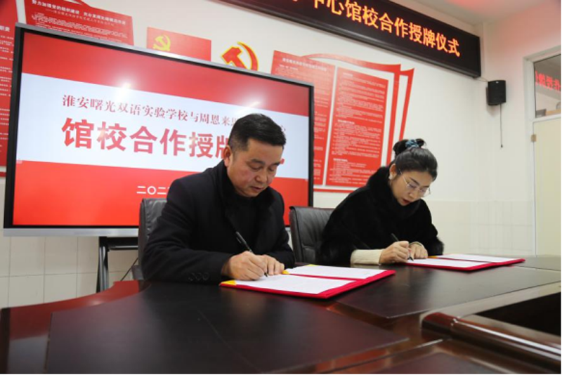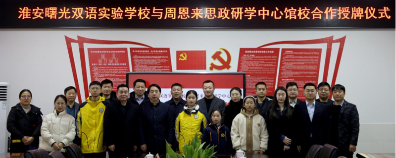 为进一步丰富我校学生实践成长课程、开阔学生视野、提升学生综合素质,2月17日上午,淮安曙光双语实验学校与周恩来思政研学中心馆校合作授牌仪式在曙光双语实验学校隆重举行。