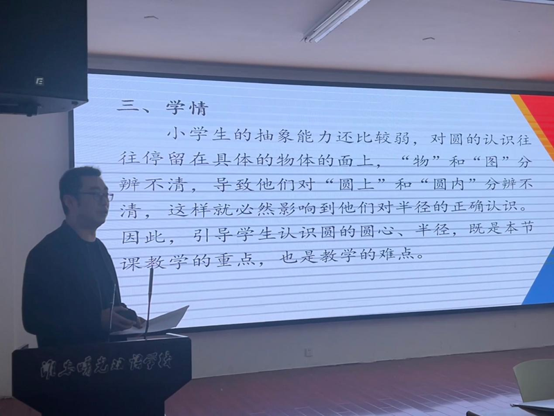 听课结束后,大家相约明智楼一楼,在教学处陈琳主任和教研组长韩传利的组织下,召开了说课和评课。五数万志恒主任和傅家阳老师从教材分析、学情分析、说教法、说学法、说教学过程等方面对本节课进行了分析,让大家对本节课的内容和张老师的课堂设计有了更加全面的分析。二数组王清老师、四数组陈风云老师以及六数组王磊老师各抒己见,不仅肯定了优点,指出不足,而且提出了具体的改进措施。陈琳主任做了最后的总结,并针对画圆过程的教学部分提出了具体的改进意见,张老师认真听取,虚心接受。