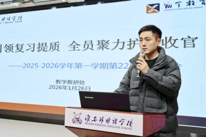 时间:2026-01-26 08:47:08 浏览:2591月19日下午,淮安外国语学校在阶梯教室召开第二十一周全体教师例会。本次会议以“靶向复习攻坚破难,凝心聚力共提质效”为主题。...