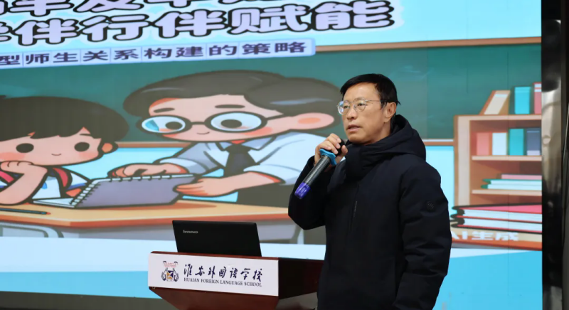 高屋建瓴指方向,深思笃行谋新篇。赵树青校长在总结讲话中,充分肯定本学期全体班主任的辛勤耕耘与丰硕育人成果,同时结合教育开展新形势、学校开展新格局,精准指出工作中需持续优化提升的方向。他强调,班主任工作要始终坚守育人初心,在班级精细化管理、学生个性化关怀、家校协同共育等方面持续深耕、提质增效。他鼓励全体班主任新学期凝心聚力、携手共进,共同书写淮外德育工作高质量开展新篇章。