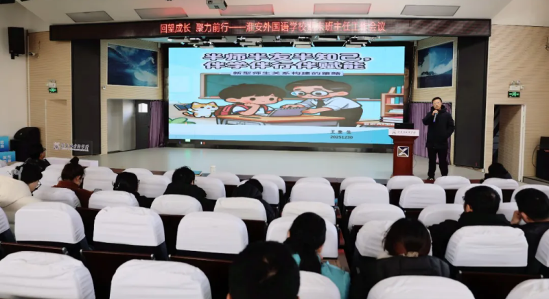 岁末回眸思耕耘,砥砺前行续新章。近期,淮安外国语学校期末班主任工作会议如期召开。会议由德育处刘杰主任主持,围绕学期工作总结复盘与德育工作提质深化两大核心展开,张艳副主任、王奎生副校长、赵树青校长出席会议。全体班主任齐聚一堂、共研育人之道,共话育才良方。