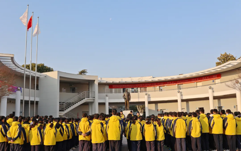 1月8日,淮安外国语学校以丰富而深刻的形式,召开纪念周恩来总理逝世五十周年系列活动。从清晨庄重的校园仪式到前往总理纪念馆参加纪念活动,再到午后沉浸的艺术观演,总理家乡的学子们完成了一场跨越时空的精神对话与坚定传承。