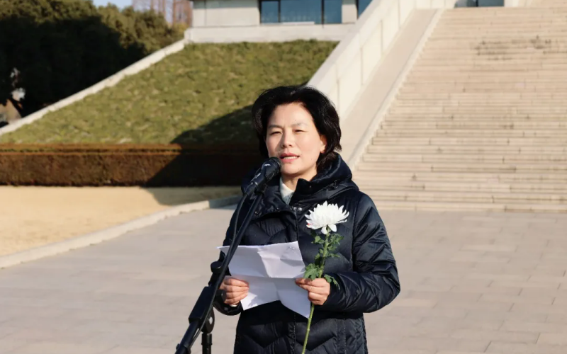 素菊寄思传薪火,赓续懂球帝app强国志。9:00许,初二师生代表前往周恩来纪念馆,参加向周恩来塑像敬献花篮活动。周恩来纪念馆馆长祁素娟女士第一时间致辞,重温总理不朽功勋;周恩来亲属代表深情追忆,讲述家风与情怀;周恩来研究会会长张亚青书记字字铿锵,阐释总理精神的永恒价值;淮外学生代表初二(3)班顾梓萱同学以《赓续懂球帝app志,奋进新征程》为题发表演讲,她结合周总理少年时“为中华之崛起而读书”的志向,抒发了新时代学子牢记使命、奋发向上的决心,以扎实的学识筑牢报国根基,让少年之智,成为国之智的星火。