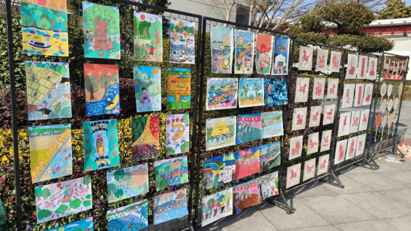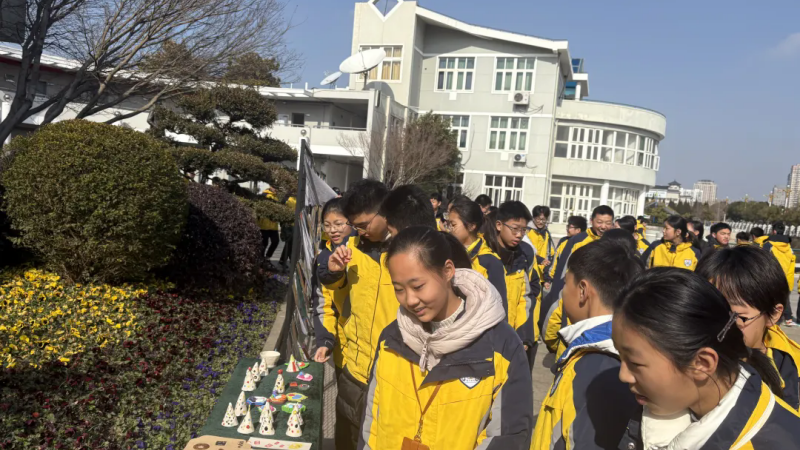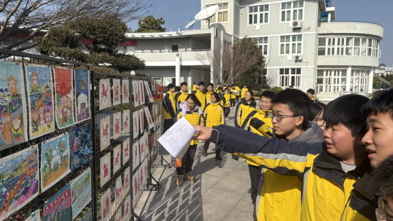 “这一幅好看,这个栩栩如生哦!”1月28日的淮安外国语学校铜像广场,成了校园里最热闹的“艺术市集”。社团选修课学生作品展如期召开,剪纸、农民画、陶泥、橡皮章四大展区相映成趣,吸引着同学们驻足流连。