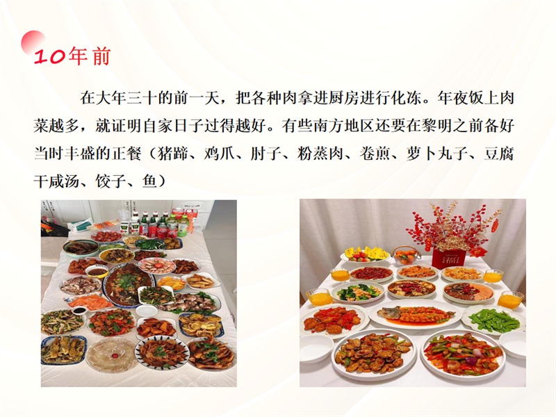 紧接着是“探寻长辈记忆中的年夜饭”环节。学生们纷纷邀请家中的长辈讲述他们记忆中的年夜饭故事。从物资匮乏年代的简单朴素,到改革开放后的丰盛多样,再到如今的注重健康与营养,长辈们的讲述如同一部生动的历史画卷,展现了年夜饭随时代变迁而不断丰富的历程。这些故事不仅让学生们分析了长辈们的生活经历,更让他们深刻体会到了年夜饭所承载的家庭温情与文化传承。
