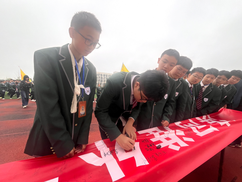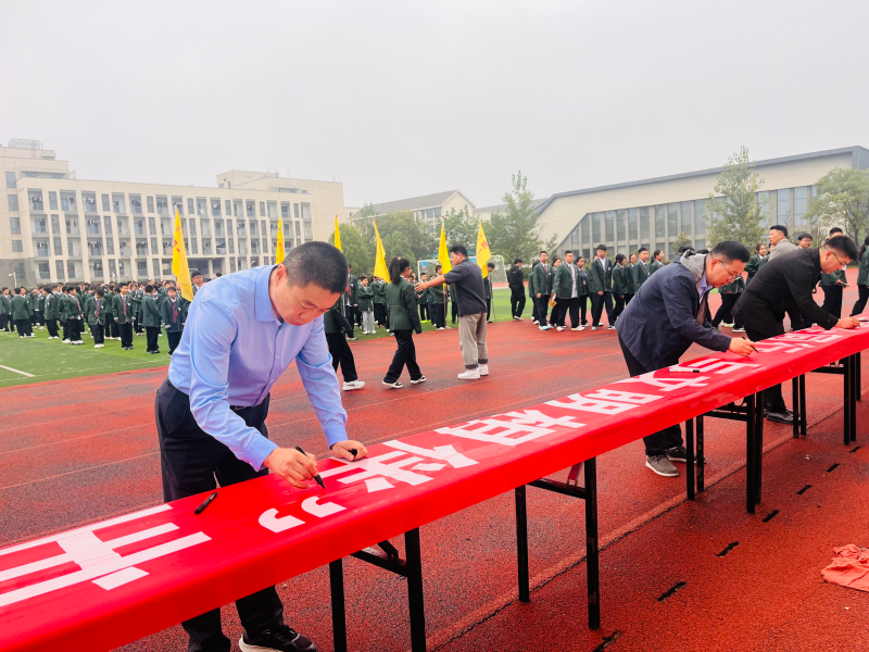 活动的最后环节是“安全承诺,从我签起”横幅签名活动。一条印有“同筑安全屏障,共建文明校园”的鲜红横幅铺展开来,同学们神情庄重,郑重地签下自己的姓名。这不仅仅是一个简单的名字,更是一份沉甸甸的承诺,代表着滨河淮外学子对构建平安校园的坚定决心与庄严承诺。长长的横幅很快被密密麻麻的名字填满,成为校园里一道亮丽而富有教育意义的风景线。