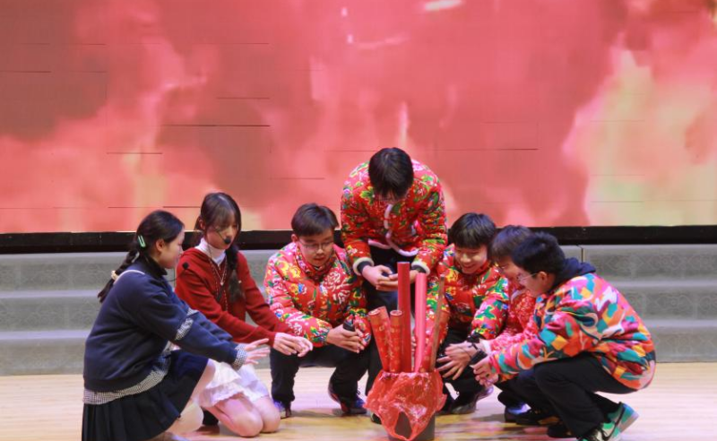 初二13班的《Hello! New Year!》以欢快的节奏拉开了新年的序幕。舞台上,同学们身着节日盛装,用活泼的英文台词、欢快的舞蹈,展现出辞旧迎新的喜悦氛围。剧中既有对新年的美好期盼,又有同学间的温馨互动,简单易懂的英文对白,让低年级的同学也能轻松理解。演员们灿烂的笑容、饱满的热情,感染了在场的每一个人,为英语课本剧展演增添了一抹温暖的节日色彩。