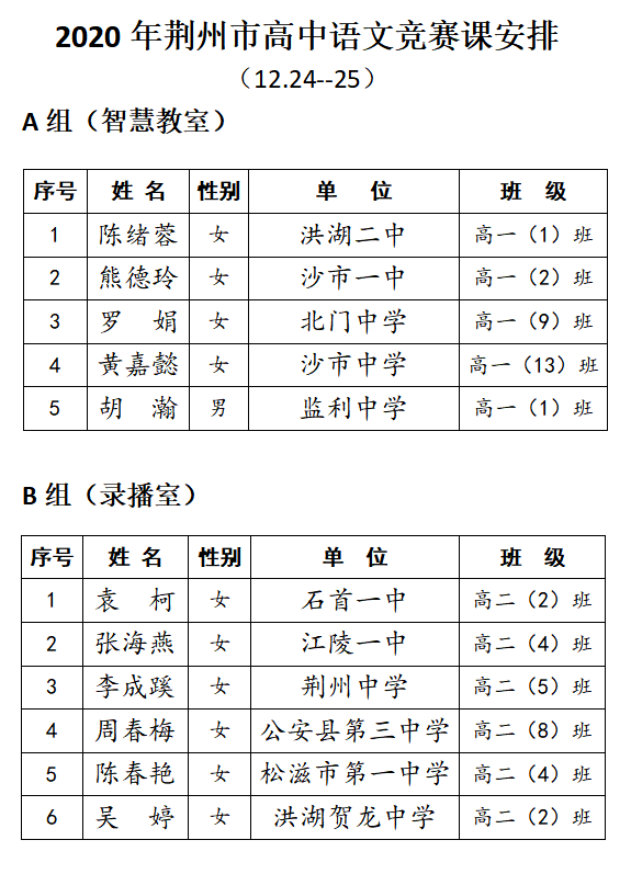 12月24至25日,监利中学胡瀚老师在2020年荆州市高中语文优质课竞赛中力挫群雄,不负众望,取得大赛一等奖第一名的优异成绩,为监利市争得了荣誉,展现了监利中学教研新成绩。