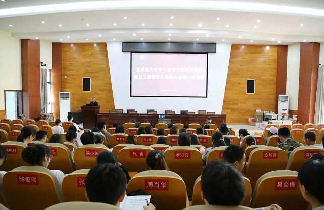 伴随着《国歌》,龙泉浙大中学工会第三次代表大会暨第三届教职工代表大会第一次会议顺利闭幕。