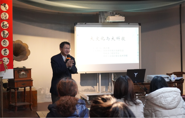 1月12日下午,由我校、苏州市传统文化研究会及苏州市工程师协会联合举办的文化大讲堂(第一期)在若水书院顺利举行。活动特邀著名科研家、科普作家、教育家高士其之子、著名辞赋家高志其做了题为“大文化与大科技”的主题讲座。苏州市传统文化研究会会长单强先生出席活动。学校师生、苏州市传统文化研究会及苏州市工程师协会会员代表五十余人参加了活动。