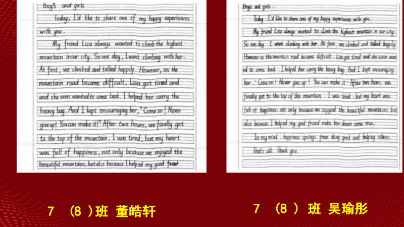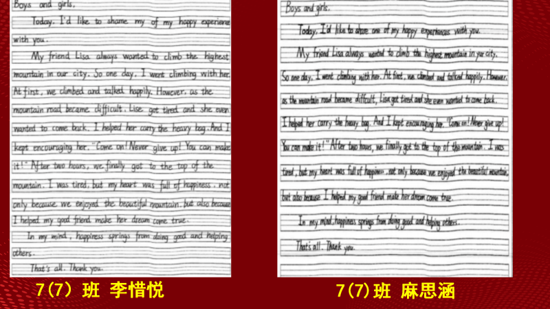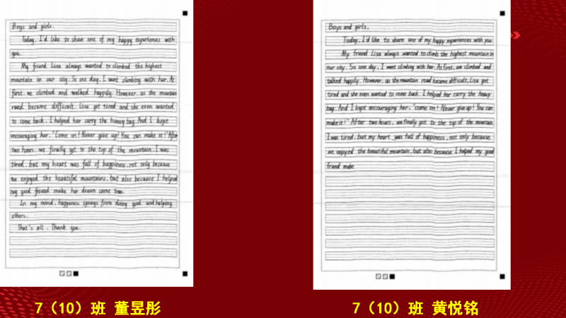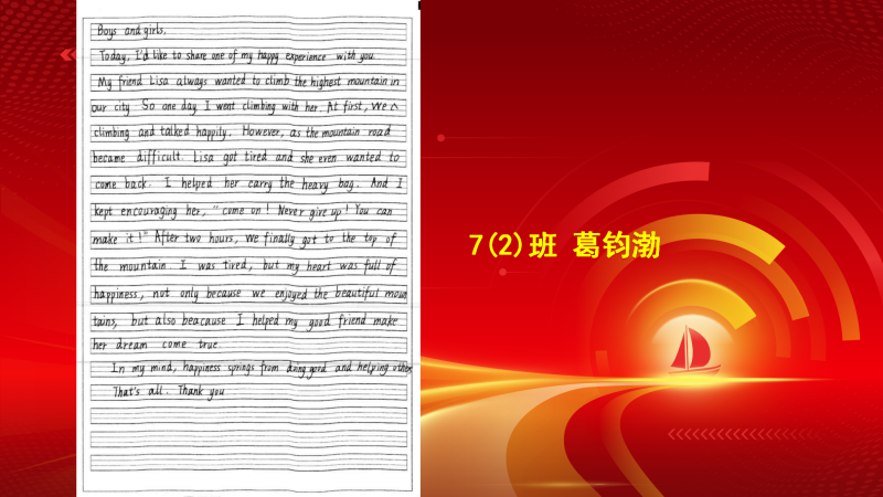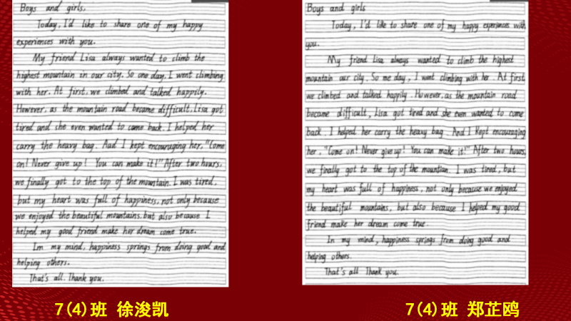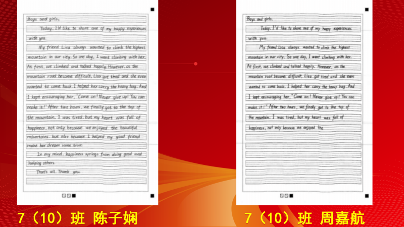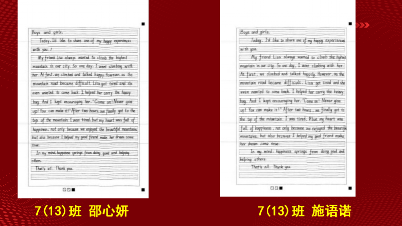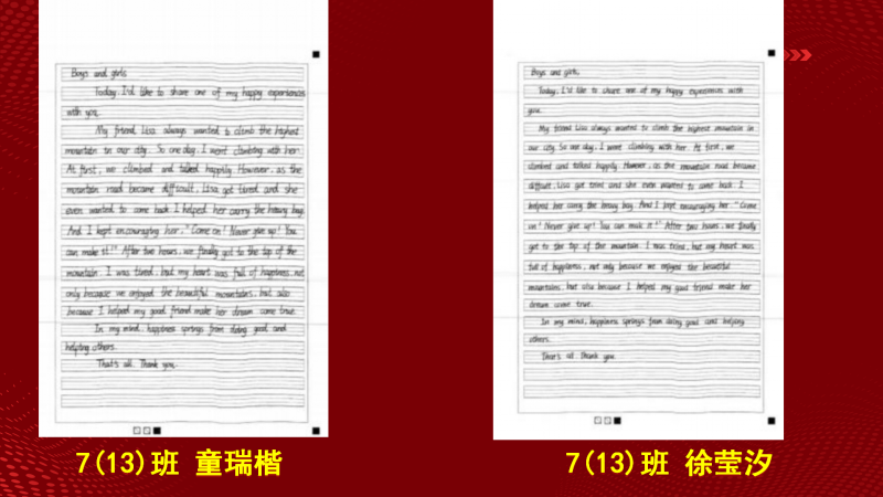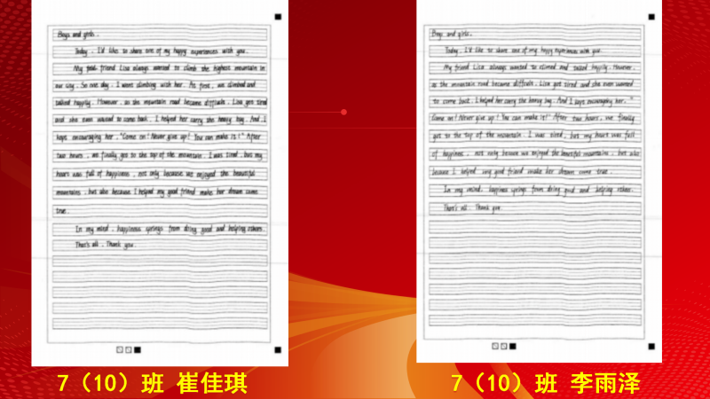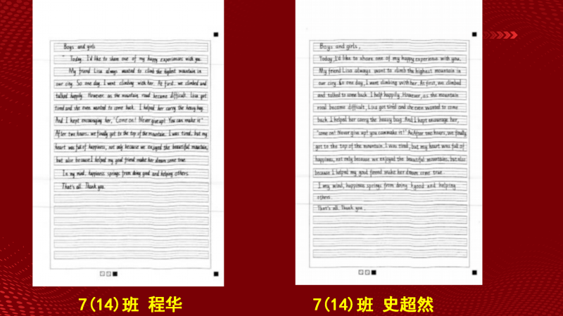 英语书写大赛同样精彩,着重考查基础素养。同学们在规定时间内创作书法作品,老师从字体规范、卷面整洁等方面打分。最终 63 幅佳作在初中部 LED 宣传屏滚动展示,成了校园一道亮丽风景。有同学兴奋表示:“看到自己作品在屏幕上,超有成就感,以后肯定把英语字写得更漂亮!”
