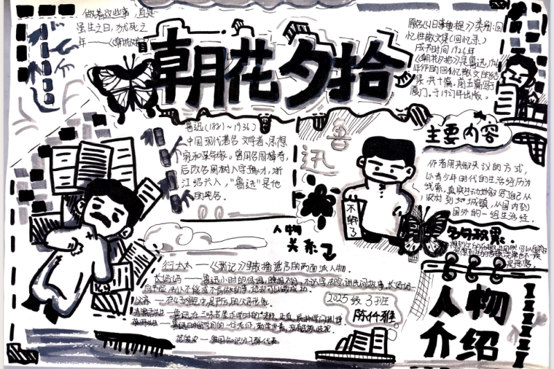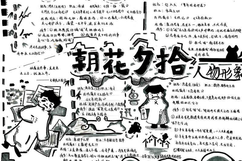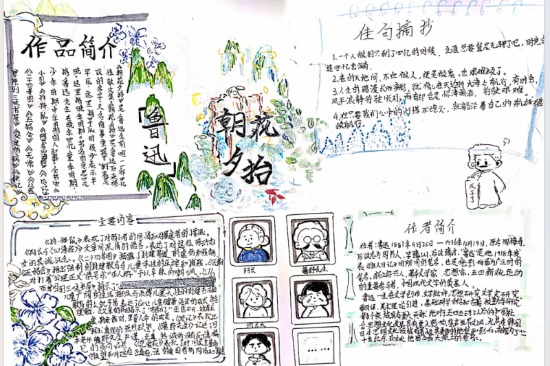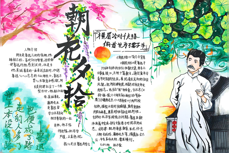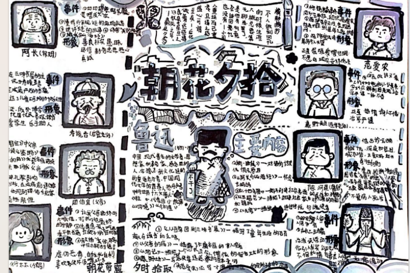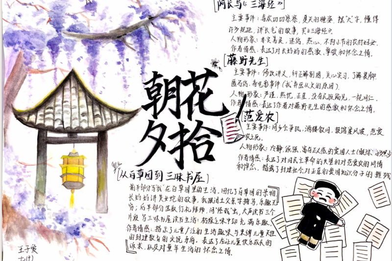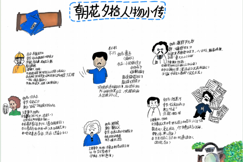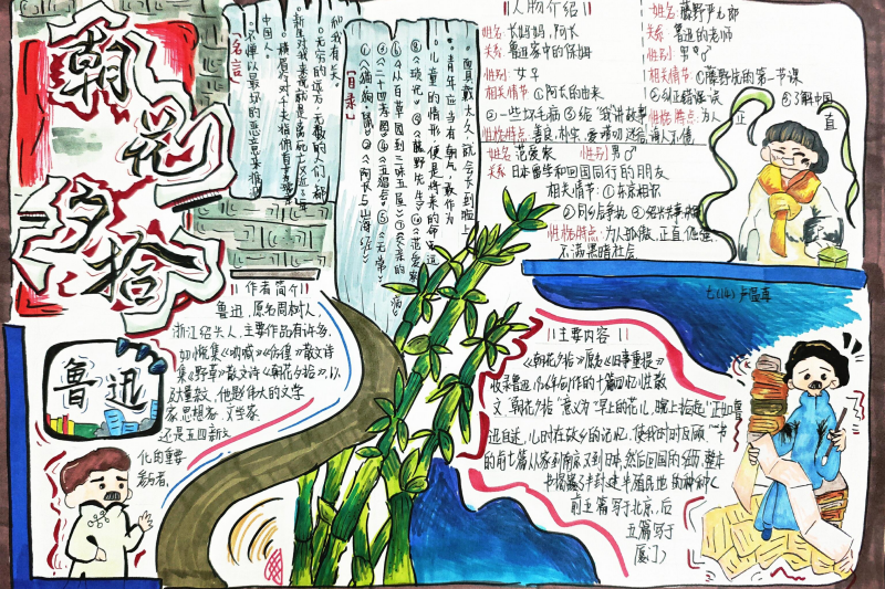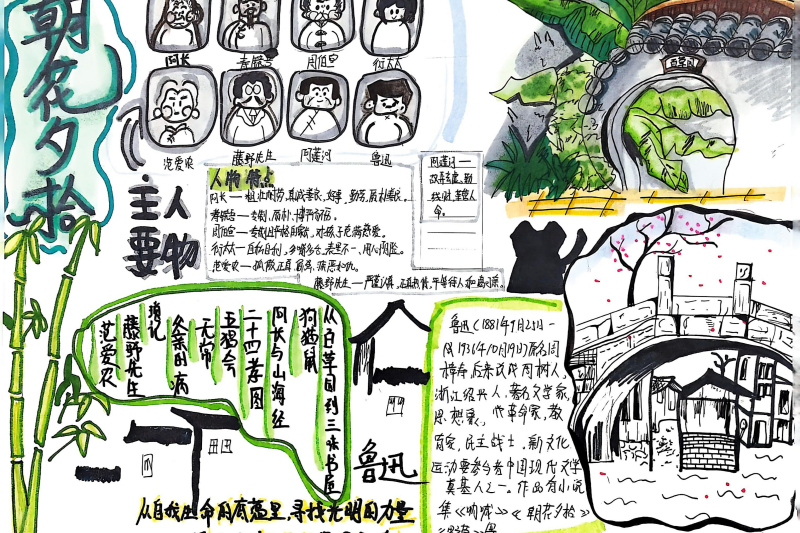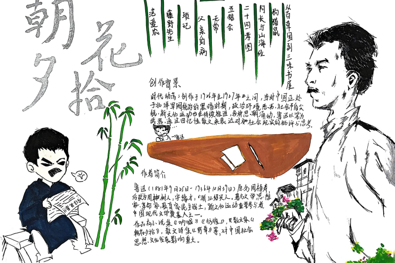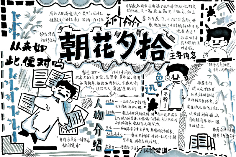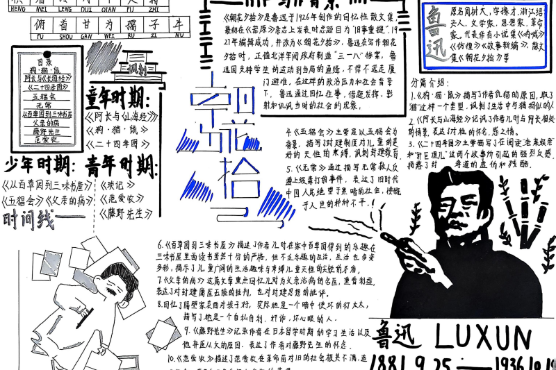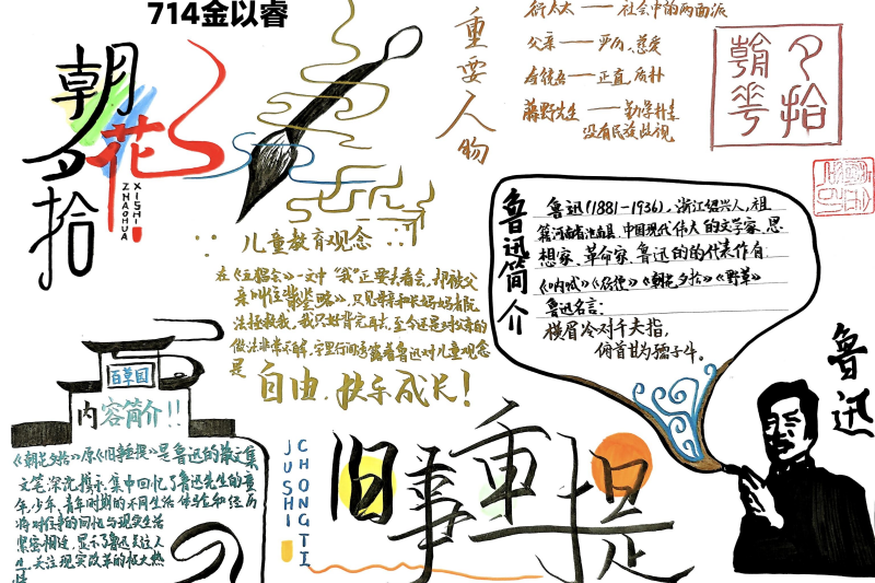 七(3)班杨玮琦同学则画了时间轴,“从百草园玩闹到日本留学,鲁迅的成长路径,用画的比看书记得牢!”