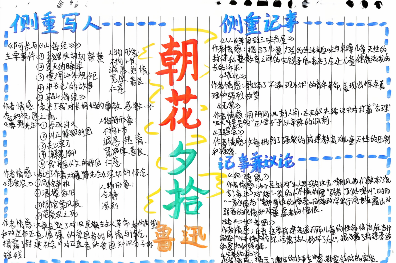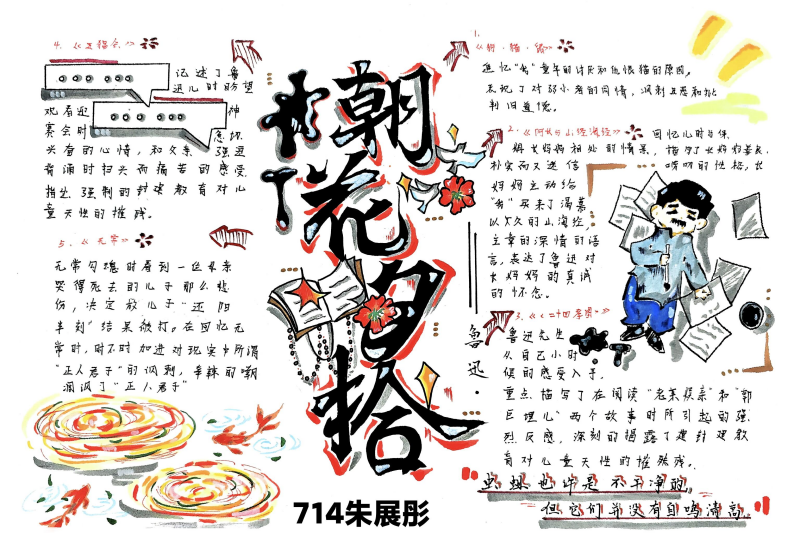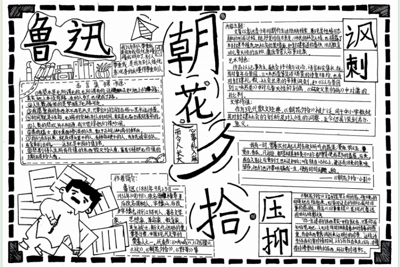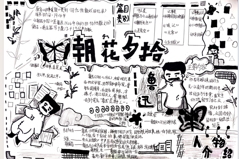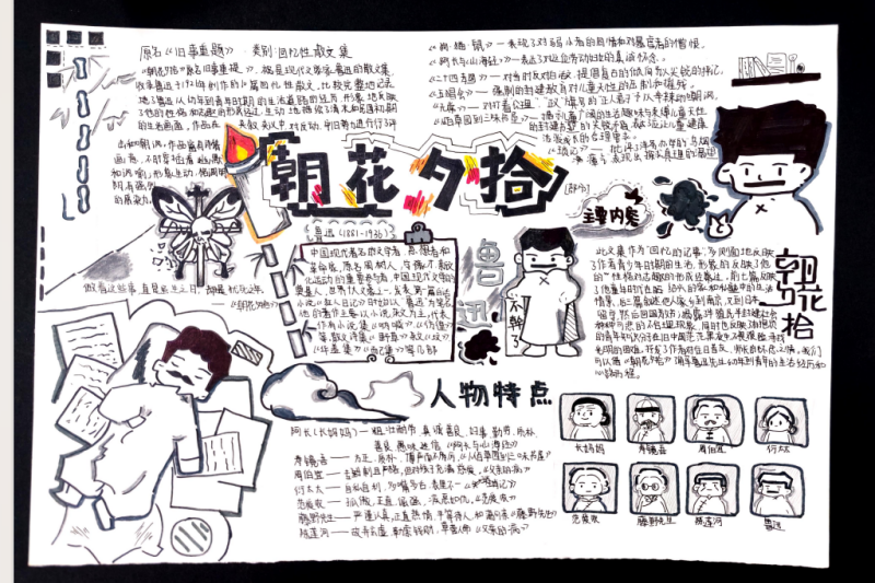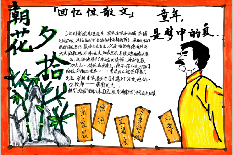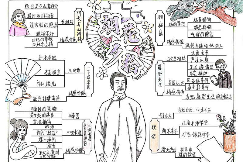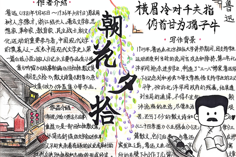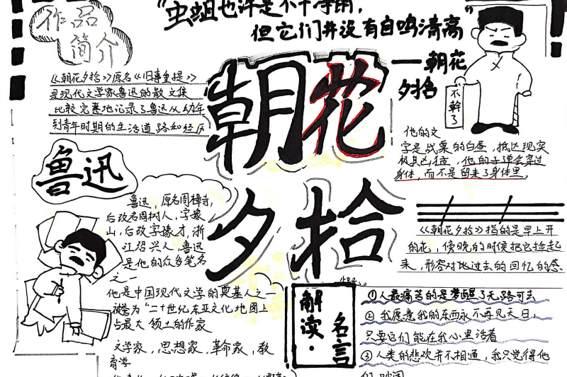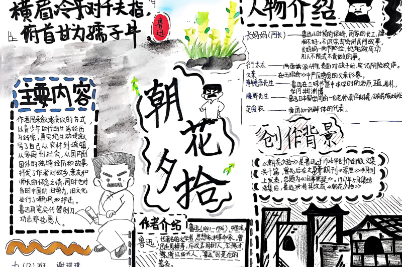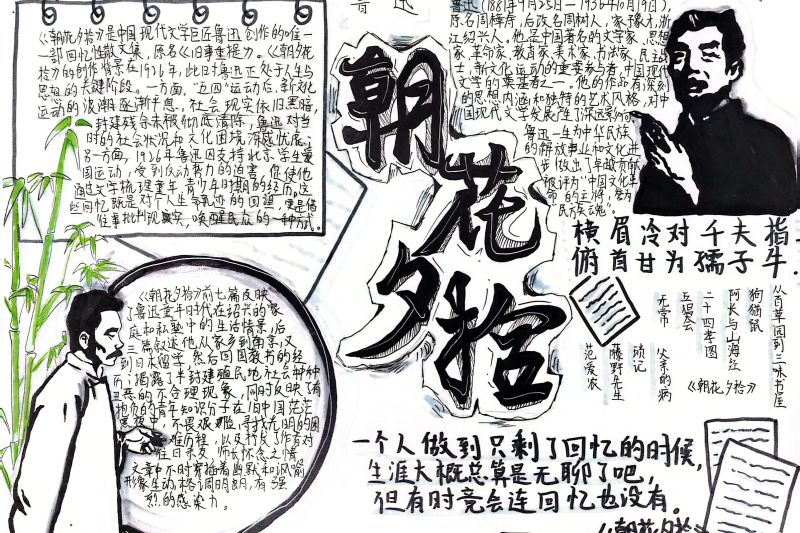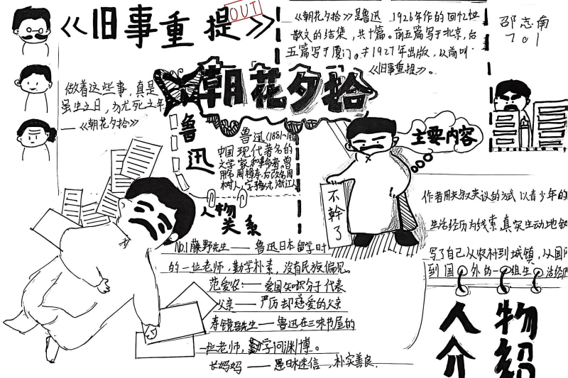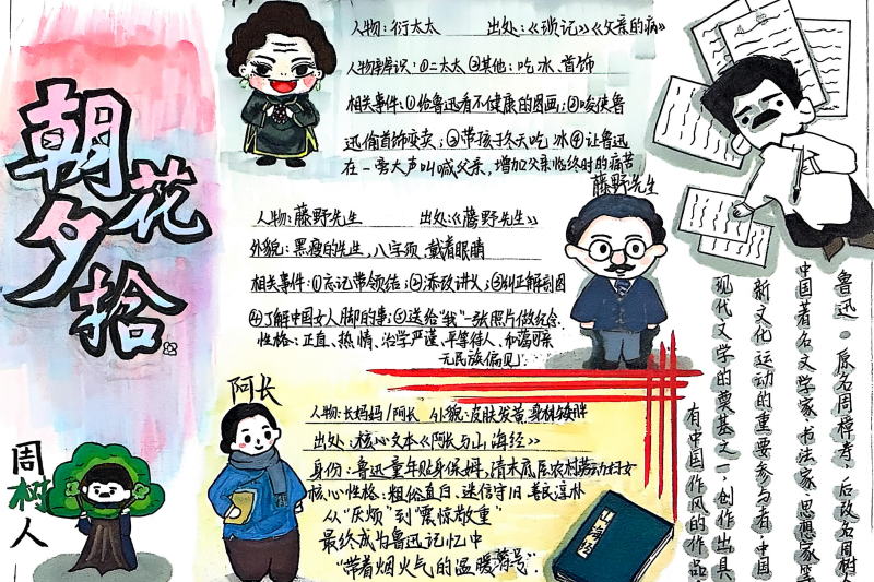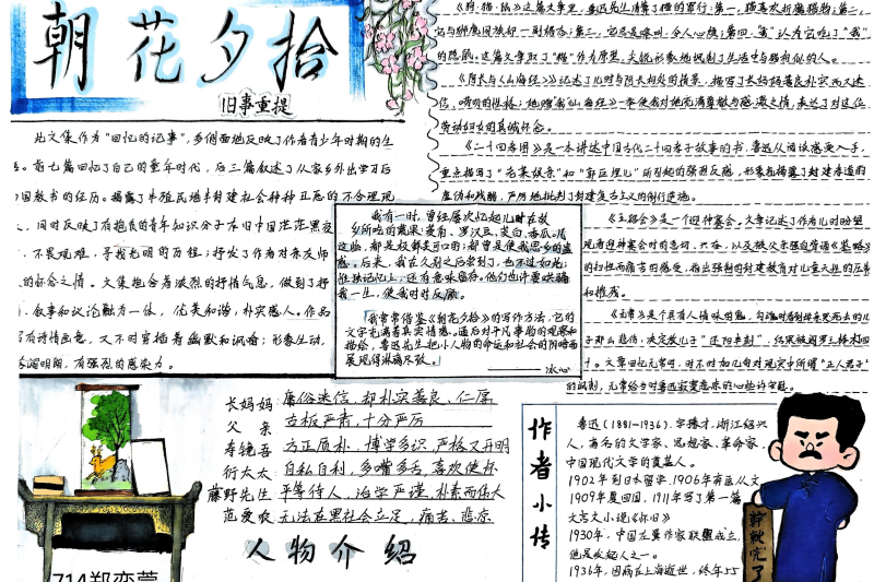 七(3)班杨玮琦同学则画了时间轴,“从百草园玩闹到日本留学,鲁迅的成长路径,用画的比看书记得牢!”