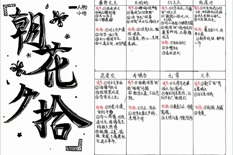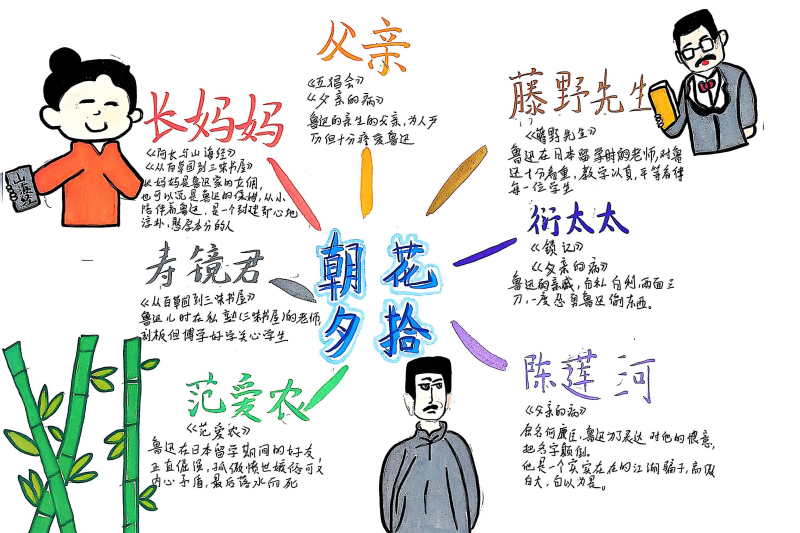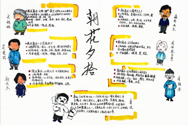 七(4)班杨约礼和李锦焕同学更细致,“我们用箭头连起人物关系,鲁迅对长妈妈从嫌弃到想念的变化,一看就明白!”