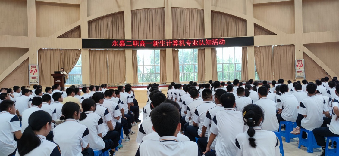9月14日下午,2021级电子技术应用专业认知在校体育馆内举行。