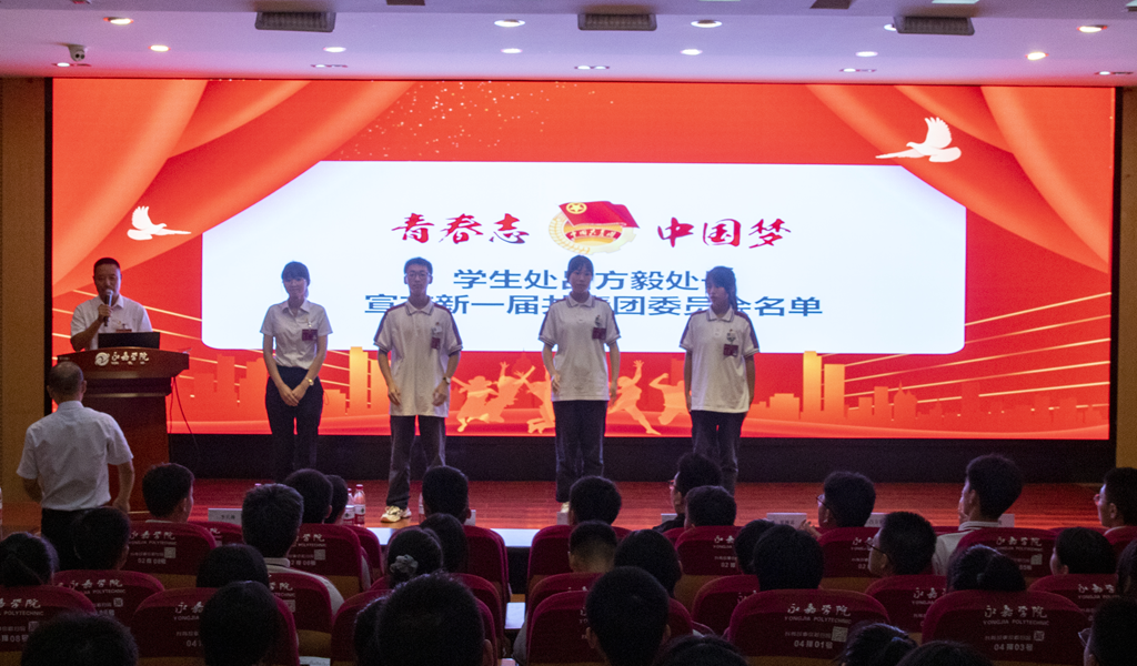 吕方毅处长宣布新一届共青团委员会名单。根据大会选举办法的规定,汤盈盈(女)、赵亚微(女)、麻程翔、暨益棋(女)4位同志当选为共青团永嘉县第二职业学校第六届委员会委员,其中赵亚微同志当选为共青团永嘉县第二职业学校第六届委员会书记,麻程翔同志当选为共青团永嘉县第二职业学校委员会副书记。
