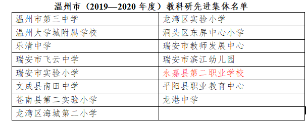 9.喜讯 | 热烈祝贺永嘉二职荣获“温州市教科研先进集体”称号