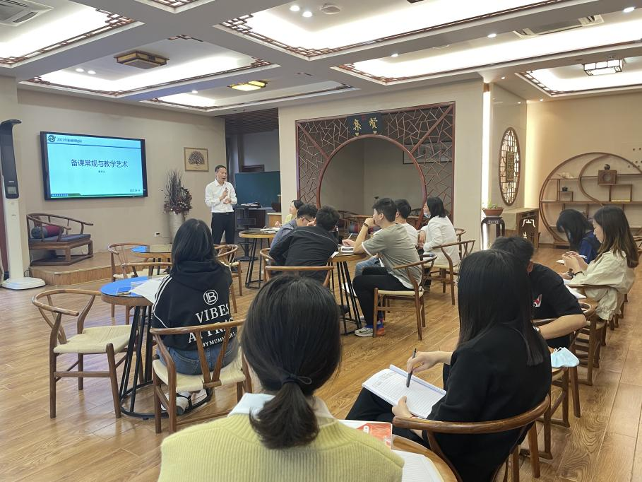 为进一步提高新进教师常规备课与授课能力及业务水平,永嘉学院于4月14日下午,在嘉园做专题培训。本次活动邀请了永嘉学院实训处副处长戴建法老师做《备课常规与教学艺术》专题讲座。活动由教研处处长谢丽莉主持。
