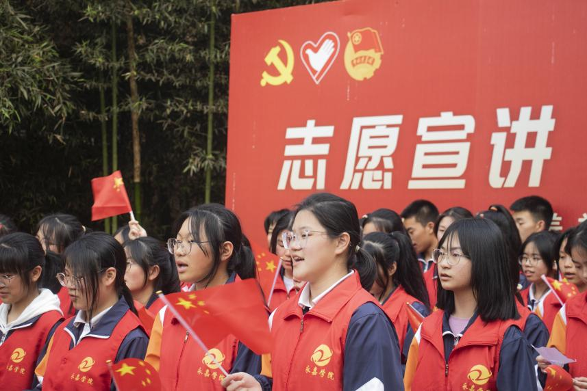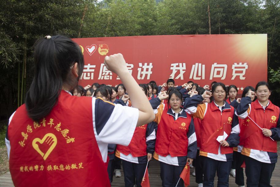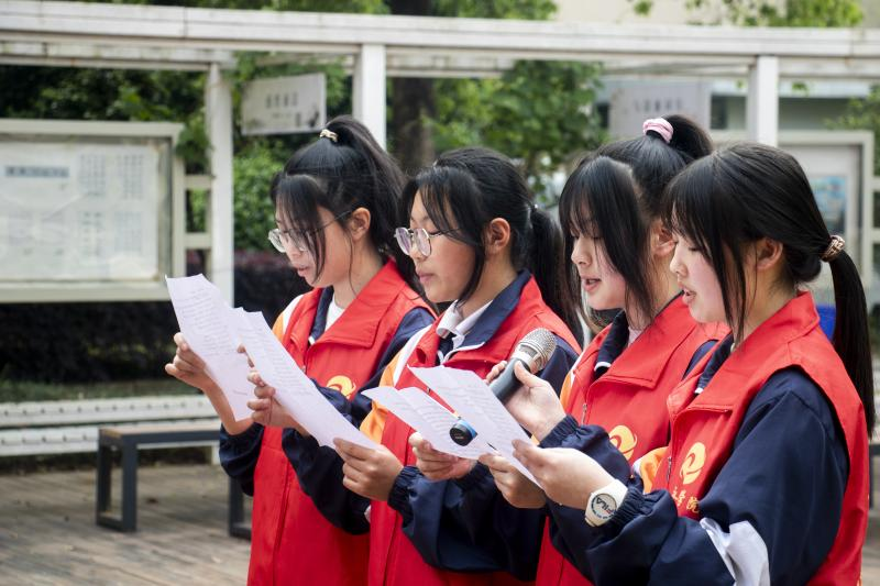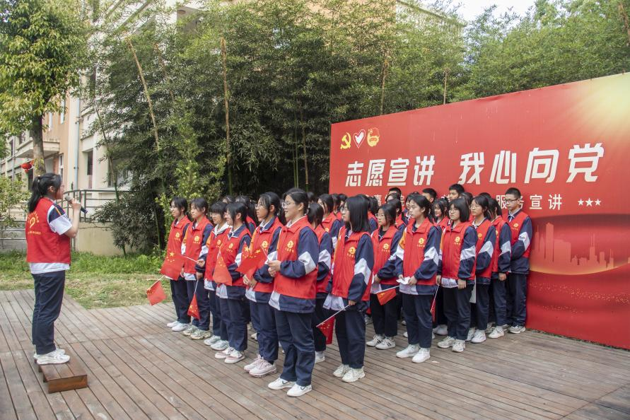 接下来,陈若茜同学带领大家宣誓。同学们举起紧握的右手,以青春的名义铿锵有力地宣誓:“我要用智慧培育理想。何其有幸,生于华夏,生于盛世,见证百年。我们生在红旗下,长在春风里,不经战乱,不缺衣食。人民有信仰,国家有力量,民族有希望。目之所至皆华夏,五星闪耀皆信仰。祝福伟大的祖国繁荣昌盛!”誓言的最后,同学们大声喊出自己的名字,眼里是满满的自豪。