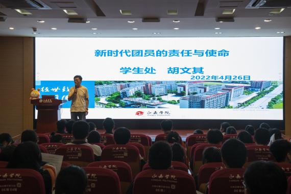 26日晚,学生处副处长胡文其老师为大家带来团课第六课:《新时代团员的责任与使命》。胡文其老师讲道:“作为团员,应从自我勤奋学习开始。”他希望同学们不负韶华,做有责任意识和创新精神的新时代建设者。