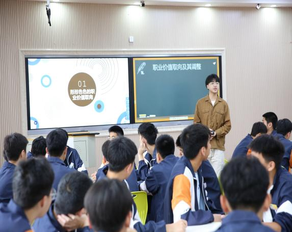 第一时间是金建聪老师带来的《职业价值取向及其调整》,金老师从父母的职业选择导入学生个人的职业价值取向,结合电商专业特色设计互动环节,顺利获得时政案例向引导学生树立正确的职业价值取向。