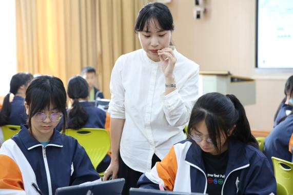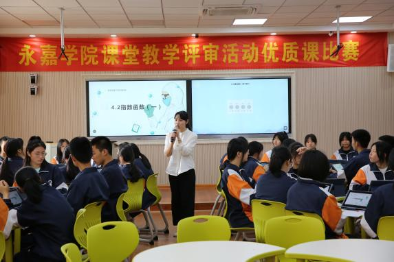接下来是钱旦旦老师的《指数函数》,她和学生一起用数学的视角解读疫情下的《指数函数及其图像与性质》。顺利获得生动情景,从病毒增长模型开始,学习指数函数的概念、图像、性质,到解决一开始提出的病毒传播指数R0,形成教学闭环。课堂上,独立思考加小组探究,学生知识真正内化;交互式软件,学生学习兴趣浓厚,课堂氛围热烈;融入了思政元素,激励学生每天比别人努力多一点,充分体现了“学为中心”的理念。
