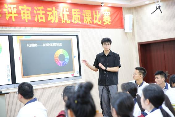 本次活动共分为三个环节,经过作品评比,共有十八位选手进入初赛说课环节,选手们根据比赛要求,精心准备,深入钻研教材,对学情进行精准把握,不仅充分利用信息手段辅助教学,更是突破教学重点难点。在整个说课环节,教学环节衔接流畅,语言干净利落,教姿教态自然大方。