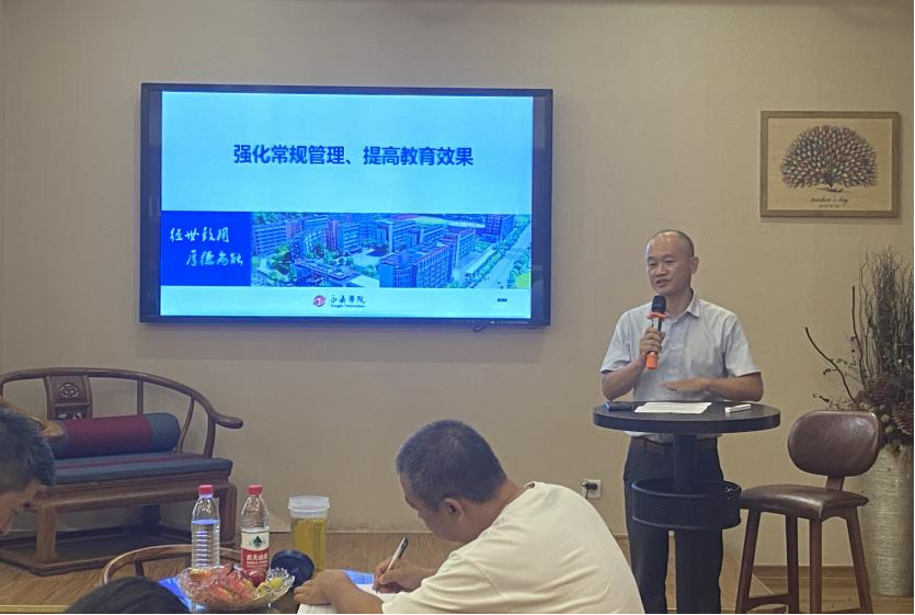 金秋已至,桂花芬芳,学期伊始,谋划先行。9月7日,永嘉学院高二段中职部于“嘉园”召开了新学期班主任工作会议。校长助理李兵林,高二段中职部段长姜涛,段长助理罗建群、谢小灿,以及全体高二段中职部班主任参加会议。