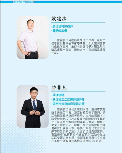 “未被疑云遮望眼”,风物长宜放眼量。永嘉二职的智慧教育推广工作先行一步,已然超前了其他兄弟学校。学校智慧教育讲师团于2021年6月份创建,多次承接省(市、县)级之江汇平台应用、智慧教学和智慧校园钉钉平台培训,专题讲座超过50场次,很好地带动了全县乃至全市周边学校智慧教育的同步开展。