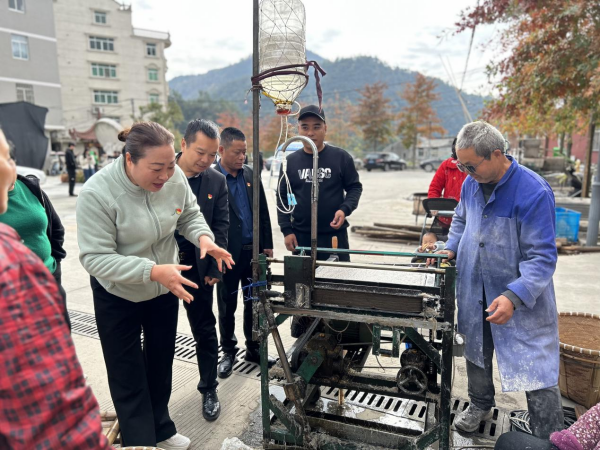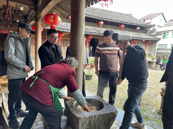 最后,在村民的指导下,师生体验了制作地瓜粉、捣糖糕等劳作活动,感受他们对生活的热爱和对农间劳作的热情。