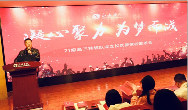 和衷共济聚云端,家校同频为梦战,为促进学校教育与家庭教育的协调开展,进一步增强教师与家长的研讨,形成教育合力网,2023年12月3日下午,我校升学部召开了特战队创建仪式暨家校联系会,本次活动由升学部副主任姜涛老师主持。永嘉学院韦恒教授、升学部主任邵泉取、高三班主任、特战队学生及家长参加了此次活动。