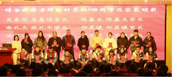 “百舸争流,奋楫者先”,奋斗者劈波斩浪,贵在奋楫杨帆。21高职服装1班尹娴雅同学代表全体高三本科特战队成员发言,她从三次省调研考试中分析自身情况,勉励大家用破釜沉舟的决心,勇往直前的信心,坚定不移的恒心,为自己的青春书写一份美好的答卷。莫言曾说:“孩子的优秀,渗透着父母的汗水。”21高职电子1班曾祥铭的爸爸代表特战队家长上台发言,曾爸爸对学校领导和老师们的辛勤付出表示真诚的感谢,认为家庭教育会对孩子的成长产生深远的影响,希望家长们多给动力,少给压力;多些关心,少些絮叨;多予鼓励,少予责备,并告诉孩子们只要肯努力,一切皆有可能,乾坤未定,你我皆是黑马。
