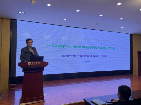 为帮助中职教师更好地理解自身的职业开展路径,提升教学技能,以适应教育改革的新要求。12月4日下午,永嘉学院举行“名师讲坛”专题活动,本次活动特邀浙江省特级教师、正高级讲师,杭州市电子信息职业学校技术研发中心主任宣琪老师做专题分享。活动由教研处处长戴建法主持。