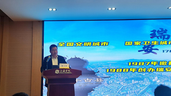 永嘉学院吕正军院长致欢迎辞,并介绍了永嘉学院的办学情况。温州城市大学伍挺书记做《踔厉奋发谋开大,笃行不怠上高台》的讲话。他指出,近年来,温州社区教育基于现实开展需要,着力构建服务全民终身学习的教育体系,赋能谱写“两个先行”壮丽篇章,助力温州“共享社·幸福里”建设,为打造共同富裕示范区市域样板给予坚强保障和人力支撑,在加快建设更具活力的“千年商港、幸福温州”中的作用不容小觑。在办学体系、办学品质、办学成果等方面工作富有成效,形成了具有温州特色的全民学习品牌,持续构建“三种办学模式”、强化“四大服务职能”、实施“五大建设工程”。他总结了温州终身教育的工作和成绩,分析了主要问题和原因,并对接下来的工作提出了新的思路和展望。
